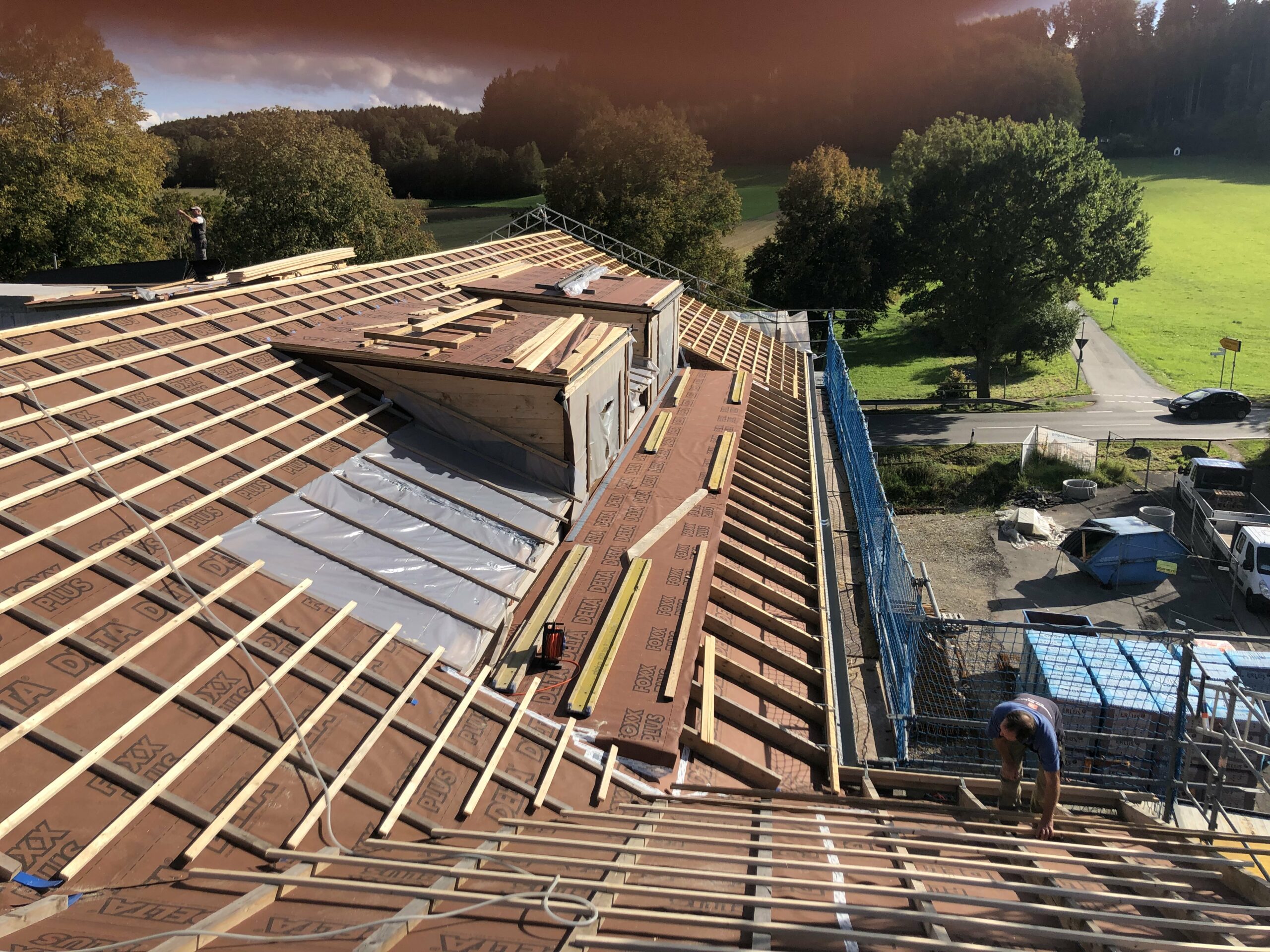 Dachsanierung mit Prefa Dachplatten sowie Turmeindeckung in Doppelstehfalztechnik & Kapelle in Traunstein (Hochberg)